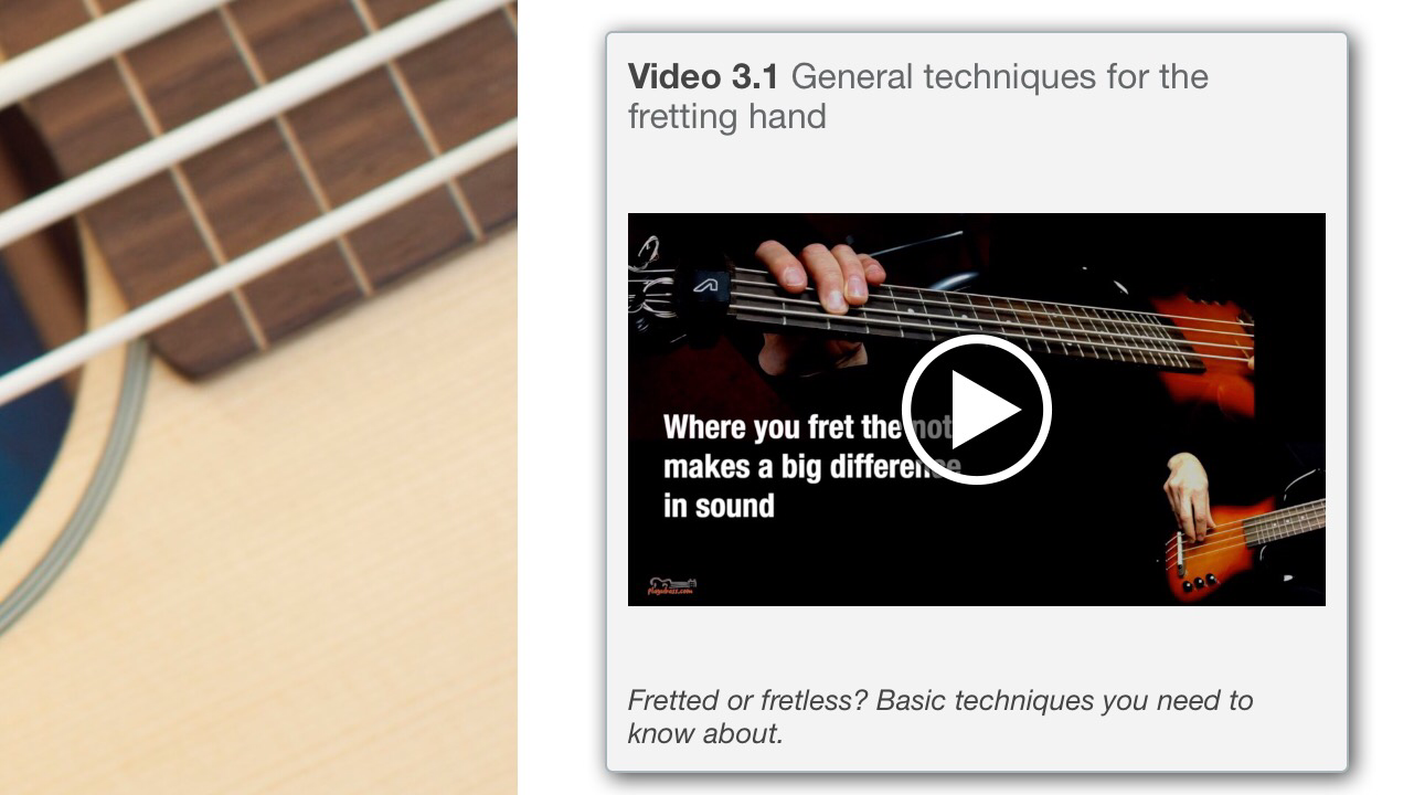 In Lesson 3 the focus is the fretting hand. From where and how to put your fingers on the fretboard to get the best sound to warm-up exercises and more.